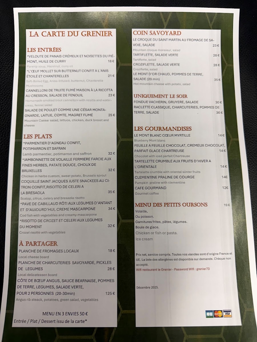 Le Grenier offers an authentic French dining experience nestled in the charming village of Les Belleville. This bistro and brasserie masterfully blends traditional French cuisine with warm hospitality, making every visit special. Diners rave about the cozy ambiance, with its inviting terrace featuring fires and blankets—perfect for the alpine chill. The menu presents expertly crafted dishes that celebrate classic French flavors, prepared with finesse and care. Highlights include hearty, comforting plates that remain flavorful even when served late, showcasing the kitchen’s dedication. Friendly and attentive staff elevate the experience, attending to every detail, from warming gloves to ensuring a welcoming atmosphere. Whether stopping by for coffee or indulging in a full meal, Le Grenier promises genuine pleasure and heartfelt service. It’s a must-visit for those craving proper French cooking in a relaxed, festive setting. This is culinary tradition, served with sincerity and style.